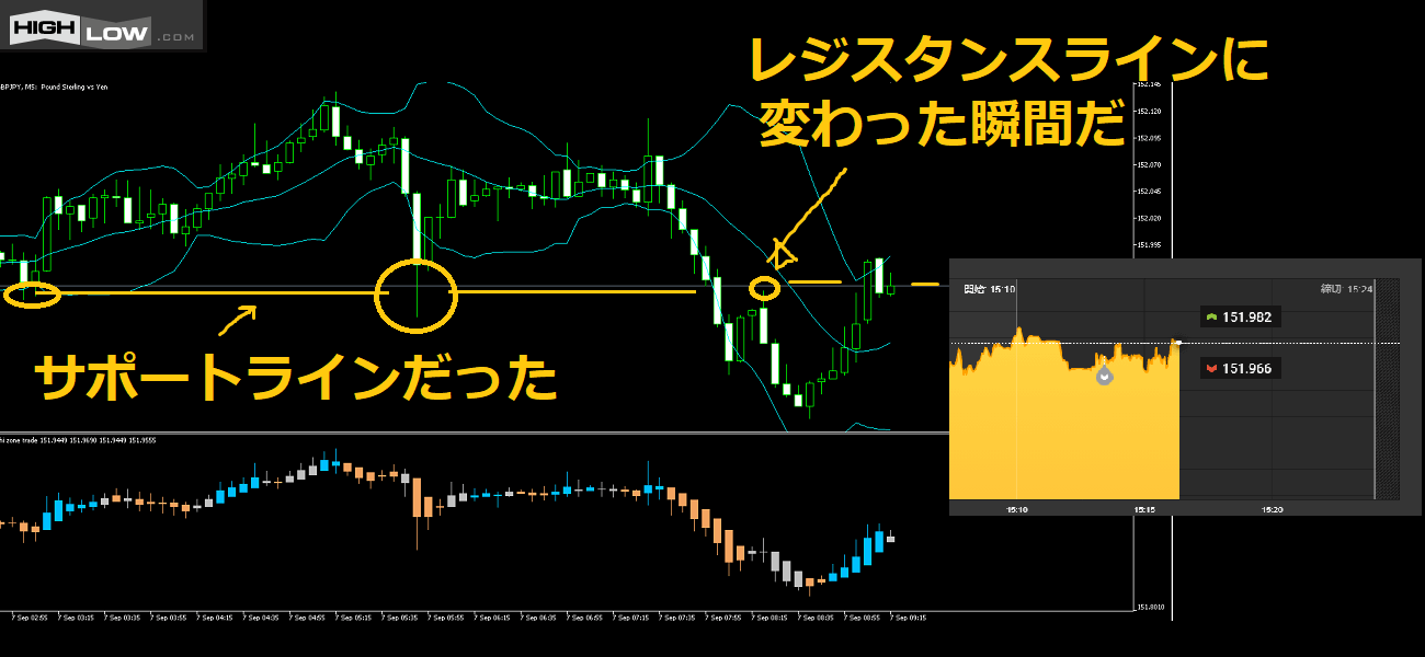 〇のところが今度はレジスタンスラインになってしまったというわけだ!