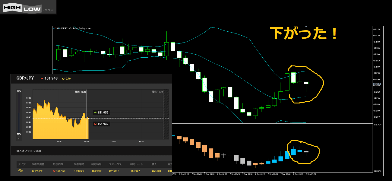 いつものように短期のハイローをするから、ポンド/円(GBPJPY)を見ている。